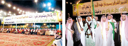 احتفل أهالي مدينة ساجر بعيد الفطر المبارك وذلك مساء ثاني أيام العيد بحضور رئيس مركز ساجر الشيخ نايف بن متعب بن محيا ووكيل مركز ساجر الشيخ ناصر بن متعب بن محيا ورئيس بلدية ساجر رئيس اللجنة المنظمة لاحتفالات العيد الأستاذ محمد بن رجاء القحطاني وبمشاركة سعادة وكيل أمين منطقة الرياض المهندس أحمد بن عبدالله التويجري وجموع من المواطنين. وبدأ الحفل الخطابي بالقرآن الكريم فكلمة الرئيس الفخري للاحتفالات رئيس مركز ساجر الشيخ نايف بن متعب بن محيا والتي رفع من خلالها أصدق عبارات التهاني للقيادة الرشيدة بمناسبة عيد الفطر المبارك مقدماً شكره لسعادة المهندس أحمد التويجري على زيارته لساجر ومشاركة الأهالي فرحتهم باحتفالات العيد ثم ألقى رئيس المجلس البلدي بساجر ضيف الله الحميدان كلمة هنأ فيها الجميع بالعيد السعيد، متمنياً أن يعيده الله على بلادنا الحبيبة وهي ترفل بالأمن والأمان. بعد ذلك كانت كلمة رئيس اللجنة المنظمة رئيس بلدية ساجر الأستاذ محمد القحطاني رفع فيها التهاني إلى القيادة الرشيدة والأسرة المالكة والشعب السعودي بهذه المناسبة، مرحباً بالمهندس التويجري لزيارته مدينة ساجر والاطلاع عن كثب على مشاريع البلدية، ثم قدم كل من الشاعر عبدالله بن مطلق الأسعدي والشاعر شجاع المشدق قصيدتين بهذه المناسبة ثم جرى تكريم المهندس أحمد التويجري من قبل رئيس مركز ساجر ورئيس بلدية ساجر ثم شارك ابن محيا والتويجري والقحطاني الجميع في العرضة السعودية ثم جري إطلاق الكثير من الألعاب النارية ثم اختتم الاحتفال بأمسية شعرية شارك فيها كل من الشعراء أحمد شامان وماجد مرزوق وضيف الله حمدان وتركي متروك وقدمها المبدع بدر صايل بن لبدان.