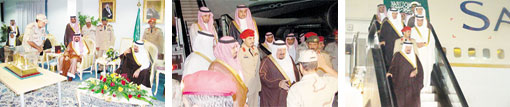 نجران - صالح آل ذيبة - حمد آل شرية: وصل صاحب السمو الملكي الأمير عبد الرحمن بن عبد العزيز نائب وزير الدفاع والطيران والمفتش العام مساء أمس إلى منطقة نجران لنقل تحيات وتهاني خادم الحرمين الشريفين الملك عبد الله بن عبد العزيز آل سعود القائد الأعلى لكافة القوات المسلحة وسمو ولي عهده الأمين