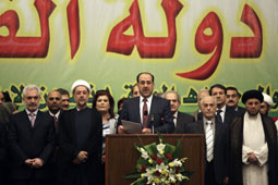 أعلن قيادي في حزب (الدعوة الإسلامية) الخميس تشكيل قائمة (ائتلاف دولة القانون)، بزعامة رئيس الوزراء العراقي نوري المالكي، لخوض الانتخابات التشريعية المقرر إجراؤها في كانون الثاني - يناير .2010 وقال حسن السنيد خلال مؤتمر بحضور المالكي تمهيداً للإعلان عن تشكيل الائتلاف (تمت المصادقة على تشكيل ائتلاف دولة القانون الذي يضم أربعين تياراً سياسياً)، مشيراً إلى (حوار يجري مع حوالي ثلاثين كياناً آخر). وأضاف أن (المشاركين يمثلون جميع) المحافظات العراقية. وقال رئيس الوزراء العراقي نوري المالكي خلال الإعلان عن تشكيلة كتلته الانتخابية (ائتلاف دولة القانون) في بغداد أن هذا الائتلاف (بعيد عن المحاصصة والطائفية). واعتبر المالكي أن الإعلان عن الائتلاف (يشكل منعطفاً تاريخياً في عملية بناء الدولة العراقية الحديثة على أسس وطنية سليمة بعيداً عن الاستبداد واعتماد الكفاءة والنزاهة والمهنية، بعيداً عن المحاصصة والطائفية). وقال (نعلن اليوم تشكيل ائتلاف دولة القانون لخوض الانتخابات البرلمانية التي ستجري في 16 من كانون الثاني - يناير). وأضاف أن تشكيل الائتلاف (من أجل خدمة الشعب العراقي و تحقيق تطلعاته في بناء دولة اتحادية مستقلة تضمن لأبنائها حياة حرة كريمة تسودها العدالة والمساواة (...) ونؤكد أن الأمن والسيادة الخارجية تظل من مسؤولية الحكومة المركزية). وأكد المالكي أن الائتلاف يعتمد (مبدأ الحوار لحل الخلافات وتعزيز المؤسسات الدستورية بما يحقق مصالح البلاد). وجدد رفضه التدخلات الأجنبية قائلاً (لن نتهاون ولن نسمح لأي دولة بالتدخل في شؤوننا الداخلية التي نعدها خطاً أحمر لا يمكن تجاوزه). وأشار رئيس الوزراء إلى أن (ائتلاف دولة القانون يمثل جميع العراقيين (...) لما يمتلكه من طاقات غير منحازة إلى طائفة أو قومية (...) وشعبنا متمسك بالحرية والتعددية وطوي صفحات الاستبداد). وختم مؤكداً (التزامنا بالحوار مع الكتل السياسية قبل وبعد الانتخابات بما يساعد تعزيز الوحدة الوطنية).