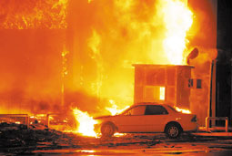 أخمدت فرق الإطفاء والإنقاذ بالدفاع المدني بمحافظة عنيزة وبمساندة من الدفاع المدني بمدينة بريدة ومحافظات البكيرية والمذنب والبدائع حريقاً هائلاً وقع في مركز مبارك التجاري لبيع الملابس الجاهزة والمستلزمات النسائية