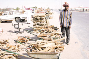 وأهم ما يميز نوع عن الآخر من الحطب هو الدخان وطيب الرائحة وسهولة تكسيره، إلا أن ارتفاع الأسعار الذي أشار إليه بعض التجار فيما أخفاه آخرون يظل عائقاً أمام الكثير من هواة الكشتات والمقناص والذين لا يغيب الحطب عن لوازم رحلاتهم كما انه أوجد سوقا الكترونية لتسويقه, الجزيرة قامت بجولة في سوق الحطب للاطلاع على الأسعار وأفضل الأوقات طلبا للحطب فتحدث عبدالله الرشيدي (بائع حطب) قائلا: لا يوجد لدينا من الحطب سوى سمر المدينة المنورة وهو أجود أنواع الحطب وتتراوح الأسعار بين الـ400 -450 لشحنة الونيت غمارة و1200 ريال إذا كانت الشحنة تصل إلى سقف السيارة (مسح التنده) و300 ريال للغمارتين، أما أسعار الحزم فتتراوح ما بين الـ30 والـ40 ريال، والصغيرة نقوم ببيعها بـ 7 ريالات، وارتفاع الأسعار كان من العام الماضي ولا أتوقع بأن يشهد السوق ارتفاعاً آخر خلال هذا الشتاء، وعن أوقات الطلب على الحطب أكد عبدالله بأن فصل الشتاء هو الموسم الوحيد الذي نقوم فيه ببيع الحطب أما باقي السنة فمبيعاتنا تعتمد على الفحم وسعر الخيشة الواحدة ما بين الـ 60 -80 ريالاً. وعن العقوبات ضد الاحتطاب الجائر أكد عبدالله بأن هناك تصاريح تمنح من الجهة المختصة تسمح لحاملها بالاحتطاب دون تعرضه للعقوبة وفي حال تم الاحتطاب بدون تصريح فانه يتم مصادرة سيارة المحتطب ويعرض للغرامة.