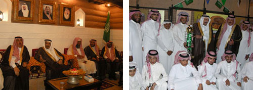 وكان سموه قد رعى افتتاح معرض ومتحف الموروث الشعبي وكرم فريق بطولة الموروث الشعبي بديوانية الزميل عبدالكريم الشمالي بالمزاحمية بحضور محافظ المزاحمية عساف بن سيف العساف وعدد من المهتمين بالتراث وجمع من المواطنين، وفور وصول سموه قص الشريط إعلاناً لبدء فعاليات المتحف التي تخدم الموروث الشعبي والتعريف به وبخاصة لدى فئة الشباب بعد ذلك تجول سموه في أرجاء المتحف واستمع إلى شرح مفصل عن كافة أرجاء المعرض الذي نظمه ومن ثم اطلع سموه على جناح ضيوف المعرض، وقدم الفنان التشكيلي فهد البديع شرحاً مفصلاً لسموه ثم استمع إلى نبذة عن إنشاء الديوانية ومن ثم اطلع سموه على عرض مصور عن سير دورة الموروث الشعبي الأولى لكرة القدم بعد ذلك استمع سموه إلى قصيدة وطنية تجدد الولاء للقيادة الرشيدة ترحيباً بزيارة سموه للمزاحمية وللديوانية ألقاها الطفل فهد بن عبدالكريم الشمالي بهذه المناسبة بعد ذلك قام سموه بتكريم الداعمين بجوائز الجمهور اليومية ومن ثم شرف سموه حفل الشاي الذي أقيم بهذه المناسبة بعد ذلك قام سموه بتسجيل كلمة في سجل زيارات الديوانية عبر فيها عن شكره وتقديره لرعاية الديوانية لهذه الفعالية وفي نهاية الحفل التقطت الصور التذكارية لسموه مع الفريق الفائز بطولة الدورة (فريق الزير).
