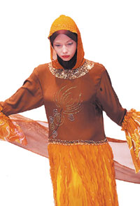 عارضة أزياء تقدّم زياً إسلامياً من تصميم المصمم الماليزي أبوكريم سعيد ضمن مهرجان أسبوع الأزياء الدولي المقام في العاصمة الماليزية كوالالمبور |