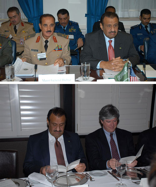 بعد ذلك رأس صاحب السمو الملكي الأمير خالد بن سلطان بن عبدالعزيز وفد المملكة العربية السعودية في الاجتماع الاستراتيجي السعودي الأمريكي المشترك. ثم حضر سموه حفل الغداء الذي أقامه الجانب الأمريكي في قيادة القوات الجوية في البنتاغون تكريما لسموه والوفد المرافق له.