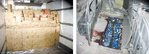 أوضح ذلك مدير عام جمرك الرقعي عبد العزيز النعيمة وقال تم الاشتباه بالشاحنة الأولى مع احد السائقين القادمين للجمرك وبإجراء التفتيش الدقيق عليها تم العثور على 1.400.000 طلقة خرازة وعدد 150.000 طلقة شوزن خبئتا بطريقة فنية داخل شاحنة (برّاد) وأضاف النعيمة أن رجال الجمارك أحبطوا في عملية أخرى داخل منفذ الرقعي محاولة تهريب 2991 طلقة شوزن مخبأة بطريقة فنية يصعب اكتشافها داخل الدرج الواقع أسفل المراتب الوسطى وتجاويف المساحات الأمامية وتم إحالة السائقين للجهات المختصة.