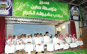 أقامت متوسطة حطين بمحافظة الخرج ضمن نشاطها لهذا العام حفل تكريم للطلاب المتفوقين بحضور أولياء أمورهم وذلك في سبيل شحذ الهمم وتشجيع الطلاب على الجد والمثابرة، حيث بدأ الحفل بالقرآن الكريم، تلا كلمة لمدير المدرسة الأستاذ شبنان بن سالم الدوسري. أوضح فيها عن مدى فخرهم