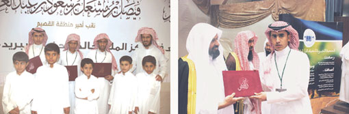 أبدى عدد من الطلاب الفائزين في مسابقة نافس الثالثة التي نظمتها الجمعية الخيرية لتحفيظ القرآن الكريم ببريدة مؤخراً وللعام الثالث على التوالي شكرهم وتقديرهم لصاحب السمو الملكي الأمير فيصل بن بندر بن عبدالعزيز أمير منطقة القصيم على رعايته
