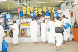 في مثل هذه الأجواء الممطرة التي تعيشها المشاعر المقدسة تشهد المشروبات الساخنة إقبالاً كبيراً من قبل الحجاج، إضافة إلى الخضراوات والفواكه التي ينصح بها الأطباء لمقاومة بعض الأمراض والأوبئة. وفي جولة لـ(الجزيرة) بين بعض البسطات في المشاعر المقدسة اتضح وجود ثبات معقول للأسعار الخارجية؛ فكوب الشاي يقدم بريال واحد وقارورة المياه بريال ونصف في بعض البسطات, وفي الأخرى بريالين. وأوضح علي أحمد أحد البائعين في إحدى البسطات أن هناك إقبالاً متزايداً من قبل الحجاج على الفواكه والشاي؛ نظراً إلى برودة الجو النسبية هذه الأيام. وعن أسعار الخضراوات بيّن أنها تتراوح ما بين 6 و8 ريالات.