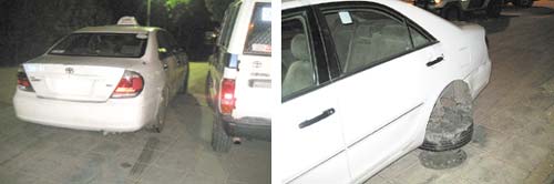 أوقفت شرطة منطقة الرياض جانيين أحدهما قام بسلب سيارة أجرة، والآخر سرق من محل قطع غيار. وكانت فرق دوريات الأمن بمنطقة الرياض قد كثفت جهودها للبحث عن أحد الجناة قام بسلب سيارة أجرة من سائقها، بعد أن ركب معه وطلب منه إيصاله إلى أحد الأماكن في مدينة الرياض وفي الطريق قام بتهديده والاعتداء عليه بالضرب وإنزاله بالقوة من سيارته الأجرة (كامري) والهرب بها إلى جهة غير معلومة، وبفضل من الله أدت يقظة رجال دوريات الأمن إلى رصد السيارة الأجرة بحي إسكان الجزيرة فتمت متابعتها داخل الحي من بعيد حتى اكتملت القوة الكافية لمحاصرة السيارة وإغلاق كافة المنافذ أمامها وعند تضييق الخناق على قائدها نزل منها وارتكب الفرار جرياً على الأقدام فتم القبض عليه وسلِّم إلى مركز شرطة المنار.