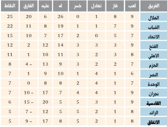 ترتيب فرق دوري زين بعد الجولة التاسعة