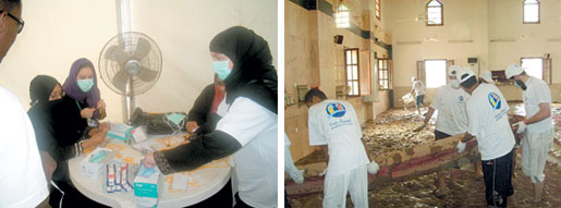 وتقوم هذه اللجان باستقبال التبرعات العينية وخاصة المواد الغذائية والفرش حيث يتم توزيعها وفقا لما يتم رصده من قبل الفرق الميدانية حيث قام عدد من المتطوعين في نظافة المساجد الموجودة في الأحياء المنكوبة فضلاً على قيام مجموعات أخرى من المتطوعين في مساعدة الأسر المتضررة في تنظيف شققها، وإخراج عفشها من المنازل المتضررة من جراء سيل.