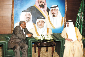 استقبل صاحب السمو الملكي الأمير فيصل بن عبدالله بن عبدالعزيز رئيس هيئة الهلال الأحمر السعودي يوم أمس بمكتب سموه في الهيئة سفير جمهورية إريتريا السيد محمد عمر محمود.. وقد قدم في بداية اللقاء السفير الإريتري تهنئة حكومة جمهورية إريتريا لحكومة خادم الحرمين الشريفين الملك عبدالله بن عبدالعزيز- حفظه الله- على ما تحقق لها من نجاح خلال خدماتها لضيوف الرحمن والتي ساهمت بشكل كبير في نجاح موسم الحج 1430هـ رغم الأزمات العالمية السياسية والصحية.. وخصَّ بالإشادة الجهود التي قامت بها هيئة الهلال الأحمر السعودي من أجل راحة وسلامة حجاج بيت الله الحرام.