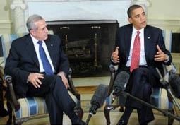 وقال أوباما: إن هناك شجرة أرز زرعت في حديقة البيت الأبيض منذ 30 عاماً وهي صامدة وقوية على قدر قوة وصمود الصداقة الأمريكية اللبنانية. واعتبر سليمان أن انتخاب أوباما مثل علامة تاريخية فارقة وخاصة ما ورد في خطابه بجامعة القاهرة في شهر يونيو الماضي. أضاف: أنهما ناقشا التهديدات الإسرائيلية ضد لبنان، مطالبا أوباما بالضغط على إسرائيل للانسحاب من الأراضي اللبنانية المحتلة. وتعهد بالتعاون والتنسيق مع الولايات المتحدة وتمثيل موقف الجامعة العربية ومصالح لبنان بعد أن انتخب لبنان عضواً غير دائم بمجلس الأمن.