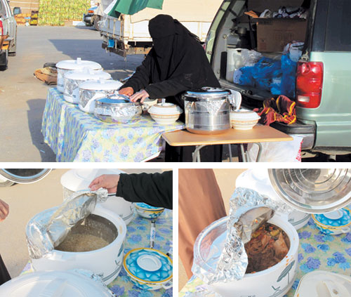 وتحدثت (أم سعود) ل(الجزيرة) عن تجربتها في الثمامة قائلة: إن الكل يبحث عن الطبخ المنزلي، خصوصا فيما يتعلق بالأكلات الشعبية، حيث أتواجد كل أربعاء وخميس وجمعة من بعد صلاة الظهر حتى المغرب، وأعرض جميع الأكلات الشعبية بداية من (الرز والجريش والمرقوق والحنيني والمطازيز)، وغيرها من الأكلات الشعبية، حيث تبقى طازجة للزبائن.
