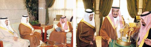 استقبل صاحب السمو الملكي الأمير سلمان بن عبدالعزيز أمير منطقة الرياض في مكتبه بقصر الحكم أمس صاحب السمو الملكي الأمير عبدالرحمن بن ناصر بن عبدالعزيز محافظ الخرج وأعضاء مجالس البلدية في السيح والدلم والهياتم.