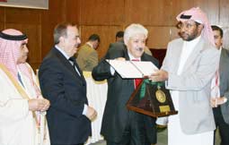 منح الاتحاد العربي للصحافة الرياضية الوسام وشهادة التقدير للصحفي السعودي خلف ملفي رئيس تحرير صحيفة (قووول أون لاين)، مدير تحرير الشؤون الرياضية بصحيفة (الشرق الأوسط) سابقا، ضمن الإعلاميين الرياضيين الذين تم تكريمهم من قبل الاتحاد العربي للصحافة الرياضية بمناسبة الاحتفال الثالث للإعلاميين الرياضيين، على هامش الجلسة الافتتاحية للجمعية العمومية التي عقدت أمس بعمان (الأردن) وذلك بحضور الأمين العام لاتحاد اللجان الأولمبية الوطنية العربية عثمان محمد السعد، حيث تم تكريم خمسة إعلاميين لم يتسن لهم الحضور في حفل طرابلس الذي أقيم مطلع شهر ديسمبر.وبهذه المناسبة عبر خلف ملفي عن سعادته واعتزازه بهذا التكريم وعده تكريما لكل منسوبي الإعلام السعودي بكل قنواته مثمنا الدعم الذي حظي به من صاحب السمو الملكي الأمير سلطان بن فهد بن عبد العزيز الرئيس العام لرعاية الشباب وسمو نائبه صاحب السمو الملكي الأمير نواف بن فيصل بن فهد بن عبد العزيز على ترشيحه لهذه الجائزة وذلك في إطار التشجيع الذي يحظى به الإعلام السعودي، وأوضح أن التكريم يعد تتويجاً لعشرين سنة أمضاها في الإعلام الرياضي، التي كانت محل اعتزازه وتقديره.ونوه بدعم رؤساء التحرير الذين عمل معهم خلال الفترة الماضية مما كان له الأثر القوي، وخاصة صاحب السمو الملكي الأمير فيصل بن سلمان بن عبد العزيز رئيس الشركة السعودية للأبحاث والنشر، متمنيا للإعلام الرياضي ومنسوبيه المزيد من النجاح والتوفيق. يذكر أنه تم تكريم راشد أميري من الإمارات، وزيد السربل من الكويت، وماجد سلطان من البحرين، ومحمد دسوقي من السودان.