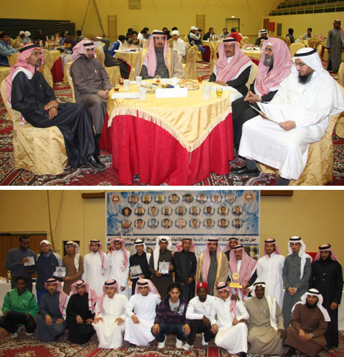 ثم قدم اللاعب مشعل الظفيري كلمة نيابة عن زملائه اللاعبين ثم قام محافظ شقراء ومدير مكتب رعاية الشباب بشقراء هليل الحميدان بتسليم الدروع التذكارية والمكافآت المالية لجميع اللاعبين الذين ساهموا في تحقيق الإنجاز والبالغ عددهم 22 لاعباً.