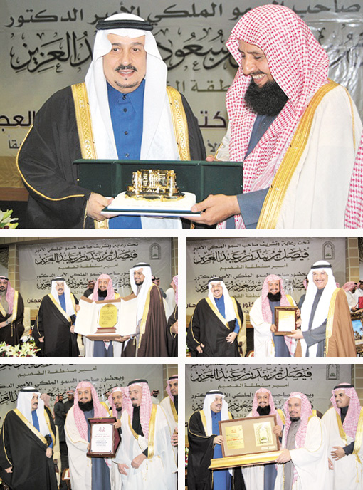 عبّر الشيخ علي بن محمد العجلان خلال كلمته بالحفل عن شكره لسمو أمير منطقة القصيم وسمو نائبه لرعايتهم هذا الحفل، وعبر عن شكره لكل من ساهم لتنظيم حفل التكريم. كما عبّر بهذه المناسبة عن شكره لخادم الحرمين الشريفين الملك عبدالله بن عبدالعزيز - حفظه الله - لعنايته ببيوت الله والدعوة إلى دينه وطبع كتابه الكريم والاهتمام بالشأن الإسلامي والشرعي في الداخل والخارج، واصلاً شكره لسمو ولي العهد الأمين الأمير سلطان بن عبدالعزيز وسمو النائب الثاني سمو الأمير نايف بن عبدالعزيز وزير الداخلية.