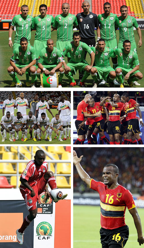 في المباراة الأولى سيسعى منتخب الجزائر ممثل الكرة العربية في المجموعة الذي يقبع في ذيل المجموعة بدون رصيد من النقاط إلى مداواة جراحه على حساب المنتخب المالي (النسور) الذي أبهر عشاق كرة القدم الأفريقية في العالم بعد أن نجح في تحقيق تعادل معجز مع منتخب أنجولا صاحب الأرض والتنظيم بأربعة أهداف لكل منهما في أقل من ربع ساعة.. وسيكون المنتخب الجزائري (الخضر) بقيادة المدرب رابح سعدان في اختيار صعب أمام منتخب مالي القوي الذي يضم نجوماً كباراً خصوصاً أن الفريقين سيلعبان للفوز فقط.. فالجزائر لا بديل عن الفوز وإلا الرحيل عن أنجولا صفر اليدين، لأن الخسارة تعني فقدان الأمل تماماً.. أما التعادل فسيضعف فرصها لأنها ستواجه في الجولة الأخيرة أنجولا صاحب الأرض والجمهور.. كما أن المنتخب المالي سيلعب هو الآخر من أجل الفوز لرفع رصيده إلى 4 نقاط تجعله في مركز متقدم وتقترب به من التأهل.. كما أن التعادل قد يفيد المنتخب المالي لأنه سيرفع رصيده إلى نقطتين ووقتها سيحتاج الفوز في المواجهة الأخيرة أمام مالاوي من أجل التأهل.