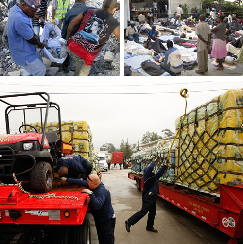 هبت دول العالم أمس الخميس مادياً ودبلوماسياً لنجدة هايتي ولملمة جراحها من أثر كارثة الزلزال المدمر الذي ضربها فجر الأربعاء وخلف عشرات الآلاف من القتلى والجرحى وشرد الملايين تاركاً البلاد في دمار شامل.
