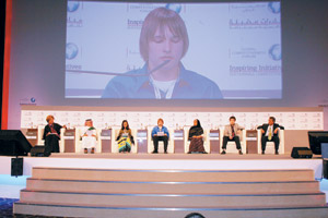 كانت جلسة اللبنات الأساسية للتنافسية المستدامة مختلفة نوعاً ما عن مثيلاتها من الجلسات، فكان للأطفال دون الثانية عشرة من عمرهم وجود فاعل حيث تحدثوا عن أهم الركائز التي تسهم في تنمية مهارات الإبداع والابتكار، وكان الأطفال متميزين من خلال كلماتهم وحديثهم على اختلاف جنسياتهم، فمنهم الماليزي والأمريكي والكازاخستاني والإندونيسي والسعودي، وقال الطفل السعودي عبد الله أنور هبرم خلال كلمته التي ألقاها يوم أمس أنه حصل على منحة من برنامج موهبة من مؤسسة الملك عبدالعزيز ورجاله للموهبة والإبداع معتبراً أن القراءة هي المصدر الأول للمعرفة ولا يستطيع أن يشبع منها أو يعيش بدونها، فأول آية نزلت بالقرآن الكريم هي (اقرأ) وهذا يحفزنا على ضرورة وأهمية القراءة.