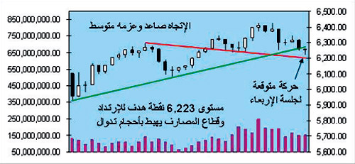 جلسة الأربعاء لا بد من التعليق على أمور هامة ممكن أن يكون بعض المتعاملين قد نسيها.. أبرزها أن سوق الأسهم منذ مارس الماضي، وهي تتكئ على اتجاه صاعد غير محفوف بمخاطر عالية.. ولا يمكن من حيث زاوية الاتجاه أن نطلق على المرحلة القادمة بأنها مهيأة للتصحيح.. بل عمليات جني أرباح وضغوط من صناع السوق لخفض المزيد من تكاليف مشترياتهم ليس بطوعهم.. بل بسبب ندرة التسهيلات في السوق، أيضاً متوسط تداولات المؤشر العام منذ تسجيل قاع مارس (4.068 نقطة) يقف عند 5800 نقطة تقريباً.. وأحجام التداول فوق 6.140 نقطة لم تشهد عمليات تدوير قوية فوقها، لكن ثمة عوامل يفضل أن تواكب انتعاش سوق الأسهم وأهمها.. ارتفاع أسواق النفط لتعطي اطمئناناً بنتائج الربع الأول القادم لقطاع قيادي كالبتروكيماويات، وبعد دمج حركة التداول لآخر 35 جلسة يتوقع أن يغلق السوق عند 6.248 نقطة عقب ضغوط ممكنة بداية الجلسة من البائعين لزيارة مستوى 6.223 نقطة وهي نقطة توازن قوى العرض والطلب.