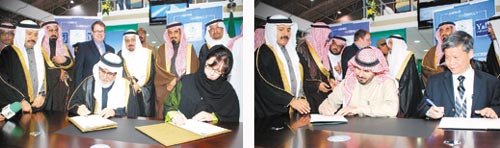 وقعت جامعة الملك سعود صباح أمس اتفاقيتين رئيستين مع كلٍّ من جامعة نانيانغ السنغافورية في مجال تحلية المياه والطاقة وجامعة ييل الأمريكية في مجال الطب وذلك ضمن فعاليات المعرض الدولي للتعليم العالي بحضور معالي وزير التعليم العالي د. خالد العنقري ومعالي مدير جامعة الملك سعود الدكتور عبدالله بن عبد الرحمن العثمان؛ حيث وقعت الجامعة مع مركز الأغشية في جامعة نانيانغ على تطوير بحث مشترك يخدم الأهداف البحثية في جامعة الملك سعود، كما يقوم بحل مشكلة تحلية المياه في المملكة باستخدام أحدث الوسائل التي تحافظ على البيئة وتقلل من استهلاك الطاقة.