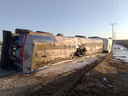 وقع حادث انقلاب لشاحنة من نوع تريلا محملة بوقود الديزل وذلك على طريق (بنبان) بمدينة الرياض، وذلك إثر اصطدامها بعمود كهرباء، مما أدى إلى انقلابها على الفور في منعطف خطر حيث تلقت غرفة عمليات الدفاع المدني بلاغاً عن الحادث وهرعت إلى الموقع ولم تندلع ألسنة النيران في الشاحنة وبقيت فرق الدفاع المدني في حالة تأهب تحسباً لأي حريق -لا سمح الله- ولم يصب قائد الشاحنة بأذى.