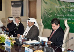 استقبل معالي الأمين العام لمركز الملك عبدالعزيز للحوار الوطني الأستاذ فيصل بن عبدالرحمن بن معمر مؤخراً، وفداً من مجلس العلاقات الخارجية الأمريكية بمدينة نيويورك تتقدمهم السيدة/ ايزابيل كولمان مستشارة السياسة الخارجية الأمريكية بالمجلس والسيد/ ستيفن كوك المستشار لشؤون الشرق الأوسط بالمجلس. وفي بداية اللقاء رحب معالي الأمين العام الأستاذ/ فيصل بن معمر بالضيوف وشكرهم على زيارتهم للمركز وقدم لهم شرحاً وافياً عن الحوار الوطني وما قدمه خلال الأعوام الماضية وما حققه من نشر ثقافة الحوار في المجتمع ومن ثم شاهد الوفد مادة وثائقية عن المركز وبرامجه التي يفعلها، تلا ذلك نقاش مفتوح حول اللقاءات الوطنية ومدى مشاركة المرأة السعودية فيها ومذكرات التفاهم التي وقعها المركز مع الجهات التعليمية والتطوعية والعلمية المختلفة بالإضافة إلى برنامج سفير والبرامج التدريبية التي يسعى المركز من خلالها إلى نشر ثقافة الحوار وجعله منهج حياة وأسلوب تعايش.
