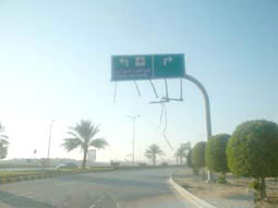 رغم مرور أكثر من 30 يومًا على وضعية هذه اللوحة الإرشادية الآيلة للسقوط على طريق الملك عبدالعزيز للخارجين من محافظة الجبيل البلد، وخطرها على المارة من قائدي المركبات، إلاَّ أن البلدية كانت غائبة عن مشهد إزالتها، ورفع خطرها عن المواطنين. وبعد مناشدة المواطنين قامت (الجزيرة) بالاتّصال بوحدة السلامة بالدفاع المدني بمحافظة الجبيل الذين تجاوبوا بإرسال وحدة لمعاينة اللوحة.