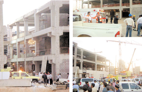 لقي عاملا بناء مصرعهما وأصيب آخر إثر سقوط السقف الخرساني في أحد المباني قيد الإنشاء للمدينة الجامعية للبنات بجامعة الملك سعود الذي تصادف وجودهم أسفله،