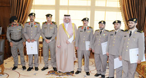 سلّم صاحب السمو الملكي الأمير فيصل بن خالد بن عبدالعزيز أمير منطقة عسير عدداً من ضباط شرطة المنطقة ميدالية التقدير العسكري ووسام الملك فيصل من الدرجة الأولى إثر صدور الأمر السامي الكريم القاضي بمنحهم ميدالية التقدير ووسام الملك فيصل لتميزهم في عملهم والمهام الموكلة إليهم. جاء ذلك لدى استقبال سموه في مكتبه في الإمارة أمس الأول مدير شرطة المنطقة اللواء عبيد الخماش والضباط المكرمين؛ حيث كرَّم أمير المنطقة العميد جبران عبدالهادي القحطاني بميدالية التقدير العسكري من الدرجة الأولى، كما كرَّم أمير عسير كلاً من العقيد عبدالعزيز بن عبدالله دعلان والمقدم سعيد محمد أبو ذيبة والرائد صالح عبدالهادي حافظ والنقيب سعيد محمد أبو دهام بوسام الملك فيصل من الدرجة الرابعة. وأشاد سموه بما قدمه الضباط المكرمون من عمل مميز جاء نتيجته حصولهم على الميداليات والأوسمة التقديرية، معبراً عن سعادته بهم وبجهودهم الطيبة. وقدم مدير شرطة المنطقة الشكر والتقدير لأمير المنطقة على توجيهاته ومتابعته السديدة التي كان لها الأثر البارز فيما تحقق لشرطة عسير من تميز في جميع الاتجاهات، فيما ألقى العميد جبران القحطاني كلمة نيابة عن المكرمين، أكد خلالها أن هذا التكريم بمثابة وسام الفخر والاعتزاز، والتحفيز لتقديم المزيد لوطن العز والرخاء.
