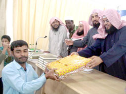 وحضر الحفل عدد من الأهالي والمشايخ , عقب ذلك قام الشيخ محمد العبدلي بتوزيع الجوائز العينية والمادية على الأشخاص الذين أسلموا وعلى الحضور من جميع الجنسيات.