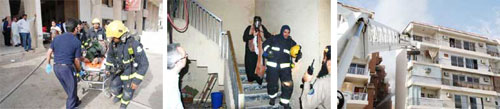 أنقذت 10 فرق إنقاذ وفرقتي إطفاء وإخلاء وسلالم بإدارة الدفاع المدني بالرياض ما يزيد على 50 شخصاً من عمارة سكنية مكونة من خمسة طوابق، حيث تمكنت فرق الإطفاء والإنقاذ من إخلاء وإخماد حريق نشب داخل شقة في الدور الرابع ظهر أمس. وأوضح النقيب عبدالله بن صالح القفاري الناطق الإعلامي بمديرية الدفاع المدني بمنطقة الرياض أن فرق الإنقاذ قامت بالتعامل بسرعة مع الحادث بعد انتشر الدخان بكثافة عالية داخل العمارة واحتجاز مجموعة كبيرة من قاطني الشقق داخلها. فيما نتج عن الحادث اختناقات بسيطة وقد تلقى الجميع العلاج اللازم من قبل مسعفي الهلال الأحمر الذين تواجدوا بشكل فعال وأيضاً من قبل بعض المستشفيات القريبة وخرج الجميع بصحة وعافية.. ويرجع سبب الحادث إلى التماس كهربائي في جهاز التكييف الخاصة بإحدى الشقق.