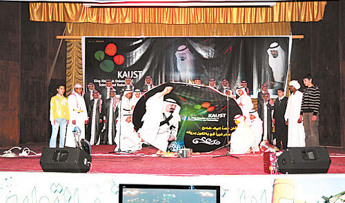 عرض طلاب ثانوية الملك عبدالعزيز في محافظة الزلفي لوحة إلقائية عن جامعة الملك عبدالله بن عبدالعزيز للعلوم والتقنية بعنوان (قصة حضارة) تحكي إنشاء هذه الجامعة كصرح تعليمي وتقني عملاق تحظى به بلادنا بدعم ومساندة خادم الحرمين الشريفين حفظه الله ورعاه.