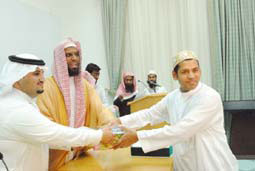 شهد مدير مركز الدعوة والإرشاد وتوعية الجاليات بمنطقة تبوك الشيخ سالم باطرفي الاحتفال الذي أقامته شعبة دعوة وتوعية جاليات تبوك لتخريج الدورة العلمية الحادية عشرة للجالية البنغالية بمركز الأمير فهد بن سلطان الاجتماعي، حيث أقيم حفل خطابي بدأ بالقرآن الكريم فكلمة الخريجين، عقب ذلك أوضح الشيخ باطرفي في كلمة له أن الدورة شارك بها تسعون شخصا اجتاز الاختبار ستة وسبعون، منوهاً في ثنايا حديثه ما تلقاه شعبة جاليات تبوك من دعم واهتمام من لدن أمير منطقة تبوك ووزير الشؤون الإسلامية. وفي نهاية الاحتفال تم تكريم الملتحقين في الدورة كما تم تكريم صحيفة الجزيرة لتغطيتها أخبار ومناشط الشعبة بمنطقة تبوك.