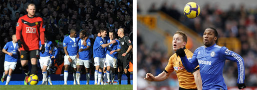فاجأ فريق ايفرتون ضيفه مانشستر يونايتد بهدفين في آخر 14 دقيقة عن طريق البديلين دان جوسلينج وجاك رودويل ليحول تأخره ويفوز 3-1 على حامل اللقب ويحرمه من اعتلاء الصدارة في الدوري الإنجليزي الممتاز لكرة القدم أمس السبت.فيما استغل تشيلسي المتصدر هزيمة مانشستر يونايتد حامل اللقب وصاحب المركز الثاني ليزيد الفارق معه في صدارة الدوري الإنجليزي الممتاز لكرة القدم إلى أربع نقاط بعد فوزه بهدفين دون مقابل على مضيفه ولفرهامبتون واندرارز أمس السبت بهدفي الإيفواري دروجبا .ليرفع الفريق رصيده إلى 61 نقطة من 27 مباراة مقابل 57 نقطة ليونايتد الذي خسر 3-1 أمام ايفرتون في وقت سابق اليوم.فيما جاءت بقية نتائج مباريات الجولة 27 من الدوري الإنجليزي الممتاز لكرة القدم كالتالي:- ارسنال 2 سندرلاند صفر.