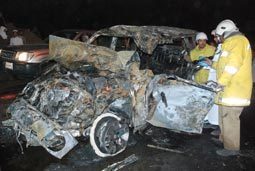 أدى ارتطام سيارة من نوع باترول بشاحنة صهريج ماء كان يهم بدخوله بالطريق الرئيسي على امتداد طريق التغيره شرق مدينة بريدة، وقد نتج عن الحادث تفحم سائق الجيب بعد اشتعال النيران بالمركبة والصهريج، وباشر الحادث فرقة من الدفاع المدني بقيادة الملازم أول ناصر الحربي وجمعية الهلال الأحمر ومرور بريدة ممثلة بمدير السير الرائد المرشد ودوريات الأمن وقام بنقل الجثة مندوب الأمانة حمد القسومي. الجدير بالذكر أن الحادث شهد من الفضوليين عددا كبيرا وقف حاجزا لأداء رجال الأمن واجبهم.