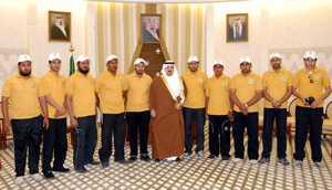 استقبل صاحب السمو الملكي الأمير فيصل بن بندر بن عبدالعزيز أمير منطقة القصيم في مكتبه بمقر ديوان الإمارة في مدينة بريدة أمس السبت المشرف العام على سرب الصقور للطيران والرياضات الجوية عبدالله بن عبدالرحمن العساف الذي يزور منطقة القصيم وأعضاء السرب بعد وصولهم إلى مدينة بريدة في محطتهم الثالثة ضمن رحلة فرحة وابتهاج من الرياض إلى تبوك بمناسبة سلامة وعودة صاحب السمو الملكي الأمير سلطان بن عبدالعزيز ولي العهد نائب رئيس مجلس الوزراء وزير الدفاع والطيران والمفتش العام، وذلك بعد أن قام الفريق عصر أمس الأول الجمعة بعروض جوية عدة في منتزه الطرفية شرق مدينة بريدة بالمظلات الشراعية التي تحمل عبارات الفرحة والسعادة بعودة وسلامة سمو ولي العهد - حفظه الله - أمام جمع غفير من المواطنين الذين توافدوا لمشاهدة هذه العروض.