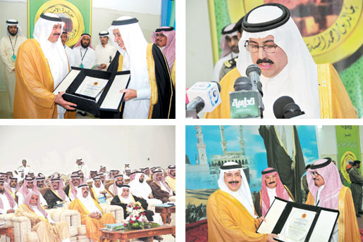 رعى صاحب السمو الأمير فيصل بن سعود بن محمد آل سعود ظهر أمس الخميس حفل توزيع جائزة معالي الأمير خالد بن أحمد السديري للتفوق العلمي بالغاط والخاصة بطلاب وطالبات ومعلمي ومعلمات مدارس محافظات الغاط والمجمعة والزلفي في عامها الثالث عشر، وذلك في القاعة الكبرى بمزرعة الأمير فهد بن خالد السديري (الخالدية) بمحافظة الغاط، وكان في استقبال سموه عند وصوله إلى القاعة معالي رئيس لجنة الجائزة الأمير فهد بن خالد السديري ومعالي نائب رئيس لجنة الجائزة تركي بن خالد السديري وناصر بن خالد السديري عضو لجنة الجائزة وأحمد بن خالد السديري عضو لجنة الجائزة ومعالي سعد بن ناصر السديري مستشار وزير الداخلية ومحافظ الغاط عبد الله ناصر السديري ووكيل المحافظة نايف بن فهد السديري وماجد بن مساعد السديري ومحافظ الخفجي وأمين عام الجائزة مدير عام التربية والتعليم للبنين بمنطقة الرياض الدكتور عبدالعزيز الدبيان وأعضاء لجنة الجائزة، وقد شرف الحفل الخطابي الذي أُقيم بهذه المناسبة الشيخ فهد الثنيان رجل الأعمال المعروف والشاعر أحمد الناصر الشايع وعضو مجلس الشورى بدر الحقيل ورجال التربية والتعليم بالمحافظات الثلاث وأولياء أمور الطلبة والطالبات وحشد كبير من المواطنين اكتظت بهم الصالة. بدأ الحفل الذي قدم فقراته الأستاذ محمد السهلي بالقرآن الكريم رتله الطالب عبدالله العازمي من متوسطة الغاط. ثم كلمة أعضاء لجنة الجائزة قدمها عضو اللجنة فيصل بن فهد بن تركي السديري والذي قال: إن جائزة المرحوم بإذن الله العم الأمير خالد بن أحمد السديري للتفوق العلمي تعد رافداً للمكانة التي يحظى بها العلم والعلماء في هذا البلد المعطاء وحافزاً للعلم بما يحقق مستوى متقدماً للتحصيل العلمي، وهي ذكرى للعم الفقيد ذلك الإنسان الفارس المحارب والمفكر الشاعر رجل المهمات الصعبة خلال عهود الملك عبدالعزيز وأبنائه سعود وفيصل وخالد وفهد -رحمهم الله. لقد كان الأمير خالد -رحمه الله- سابقاً لعصره فمنذ صغره كان شغوفاً بالعلم مدركاً لأهميته في بناء الإنسان والوطن مع أخيه -رحمه الله- نشأ في زمن كانت إمكانات التعليم فيه محدودة والإقبال عليه فيه مشقة، وكان الفقيد حريصاً طيلة عمره على تشجيع المتعلمين والاحتفاء بهم ومن هنا جاءت هذه الجائزة استمراراً لعطاء ذلك الرجل الفذ في ظل هذه الدولة الرشيدة التي منذ أنشئت على يد الملك المؤسس عبدالعزيز -طيب الله ثراه- إلى يومنا هذا تحت قيادة خادم الحرمين الشريفين الملك عبدالله بن عبدالعزيز -حفظه الله- وسمو ولي عهده الأمين صاحب السمو الملكي الأمير سلطان بن عبدالعزيز -رعاه الله- وهي ترعى العلم وتبذل بسخاء في سبيله. لقد كان الفقيد -رحمه الله- طيلة حياته شغوفاً باكتساب العلم وحريصاً على انتشاره. ثم قدم عرض مرئي عن الجائزة اشتمل حياة صاحب الجائزة الأمير خالد بن أحمد السديري -رحمه الله- العلمية والعملية وعن الجائزة وقواعدها وشروطها ونتائجها الإيجابية وتواريخها منذ إنشائها. ثم كلمة الطلاب قدمها الطالب سيف سلمان المطيري توجه خلالها بالشكر الجزيل وطيب العرفان للآباء على الرعاية والعناية والتوجيه وحسن التربية داعياً الله أن يجزل لهم المثوبة والأجر وحسن الجزاء، مقدماً شكره لمعلميه الأكارم والذين لم يبخلوا بكل علم نافع والجهد والوقت، وفي الختام وجه شكره للقائمين على هذه الجائزة وخص بالشكر رئيس لجنة الجائزة وأعضاء اللجنة على دعمهم وتشجيعهم وبث روح المنافسة الشريفة بين الطلاب، مشيراً إلى أن الجائزة هذه أصبحت مطمعاً يتمنى كل طالب أن ينال شرف التكريم بها. ثم ألقيت عدد من القصائد النبطية بهذه المناسبة. ثم كلمة المعلمين ألقاها نيابة عنهم المعلم طلال ناصر الهزاني من إدارة التربية والتعليم بمحافظة الزلفي بدأها بأبيات شعر معبرة ثم قال: ليسَ النجاحُ أنْ تُوضَعَ جَائِزَة تنافسِيَّة بل النجاحُ أنْ تُوضَعَ جَائِزَة تنافسِيَّة بصِبْغةٍ تمَيُزية فهي تنافسِيَّة فِي إذكَاءِ رُوح البَذْل والعَطاءِ وإدِارَةِ عَجَلا