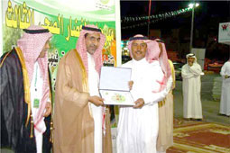 على شرف محافظ عنيزة المهندس مساعد السليم أقام مركز الأبحاث الزراعية حفل اختتام مهرجان الخضار الصحي الثالث في مقر المهرجان بسوق الخضار المركزي، حيث سلّم المحافظ شهادات شكر وتقدير من المركز للمشاركين في اللجان العاملة والمتعاونين والإعلاميين الذين ساهموا بفعالية كبيرة في إنجاح المهرجان وظهوره بصورة طيبة من خلال البرامج والأنشطة التي شملت محاضرات وندوات صحية وتوعوية شارك فيها نخبة من الأكاديميين والمختصين بالتغذية السليمة من أساتذة الجامعات والأطباء والمهندسين الزراعيين، كما أُقيمت معارض تثقيفية وأركان تعريفية بالزراعة العضوية وبرامج ترفيهية تستهدف الصغار، وتواصلت الفعاليات لمدة خمسة أيام نجح خلالها المركز في تنفيذ مهرجان صحي فريد ومتميز، إلى ذلك أقام منسوبو المركز حفل عشاء للمشاركين والعاملين بالمهرجان ومندوبي الجهات المشاركة في المعارض المصاحبة في مخيم الربيع التقني التابع للكلية التقنية بعنيزة.. وقد شاركت في هذا الحفل فرقة دار عنيزة للفنون الشعبية حيث قدمت الفرقة عدداً من الفنون الشعبية.