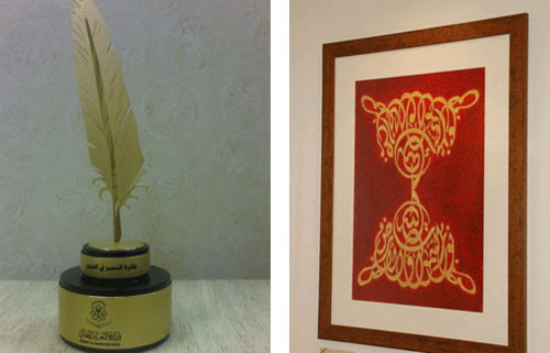 حققت الطالبة هاجر بنت سليمان المهوس من كلية التصاميم والاقتصاد المنزلي بجامعة القصيم الريشة الذهبية بمسابقة الخط العربي كجائزة لأفضل طالبة متميزة في البحث جاء ذلك ضمن فعاليات المؤتمر العلمي الأول لطلاب وطالبات التعليم العالي الذي رعاه خادم الحرمين الشريفين وافتتحه معالي وزير التعليم العالي. وقد عبرت الطالبة هاجر المهوس في حديث خاص للجزيرة عن عظيم فخرها بتلك الجائزة قائلة: الوقفة الفريدة من نوعها من خادم الحرمين الشريفين -حفظه الله- فجرت طاقات الإلهام والإبداع وأتت بثمارها إبداعاً وفناً لجميع المشاركين. وتقدمت المهوس بالشكر لمنسوبي كلية التصاميم والاقتصاد المنزلي ومنسوبي جامعة القصيم خاصة بشكرها عميد شؤون الطلاب د. خالد الشريدة الذي لم يدخر جهد في سبيل تحفيزنا وكذلك الأستاذة الفاضلة زينب السنيدي والتي بدورها كانت المتابعة والموجهة الأولى والإعلامية نورة القحطاني على مجهودها المبذول. وأضافت: وكما هو الحال فكل بذرة لا تثمر إلا بساقي فلم أجد خير من سقياء والدتي التي لم تسأم يوماً أن تصنع داخلي حصون الثقة والطموح كما هو حال إخوتي فلم أكن أجدهم إلا بموطن التحفيز المعنوي والتمجيد لطموحي فكما بحثت عن كلمات ربما شكرت فيها الجميع.