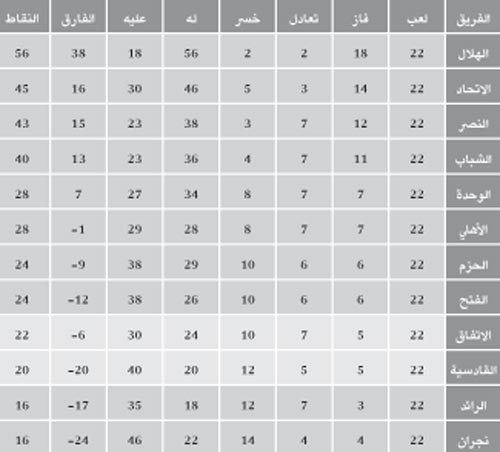 ترتيب الفرق بعد نهاية دوري زين