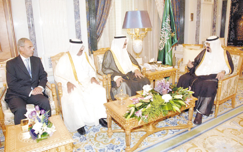 استقبل خادم الحرمين الشريفين الملك عبدالله بن عبدالعزيز آل سعود -حفظه الله- في مكتبه بالديوان الملكي في قصر اليمامة أمس معالي رئيس مجلس إدارة المجلس النقدي لدول مجلس التعاون لدول الخليج العربية محافظ مؤسسة النقد العربي السعودي الدكتور محمد بن سليمان الجاسر وأعضاء المجلس وهم