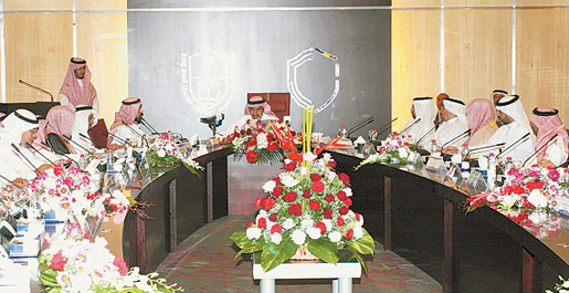 تلى ذلك كلمة لوكيل وزارة التعليم العالي للشؤون التعليمية د. محمد العوهلي، عقب ذلك ألقى معالي مدير جامعة الملك سعود د. عبدالله بن عبدالرحمن العثمان كلمة بهذه المناسبة قال فيها: من حسن حظنا أن لدينا قائدا بوزن خادم الحرمين الشريفين الملك عبدالله بن عبدالعزيز وسمو ولي عهده وسمو النائب الثاني وأمير منطقة الرياض الذي قدموا الدعم المادي للتعليم العالي وسبقه دعم معنوي، والملك عبدالله بن عبدالعزيز أراد أن يوجد نموذج على أرض الواقع لتنافس جامعات عالمية كهارفرد وبيركلي بإنشائه جامعة الملك عبدالله للعلوم والتقنية ويجب ان نقدر قرار مجلس الوزراء -يوم أمس الأول- بتأسيس 3 شركات مساهمة في التقنية والذي يجسد المعرفة الحقيقية للاستثمار بالتقنية. وبهذه المناسبة أشكر القيادة السياسية وأعضاء المجلس الاقتصادي على هذا الدعم المعرفي والتقني.