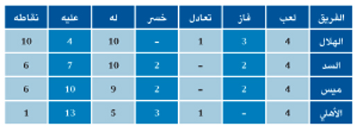 جاء ترتيب المجموعة الرابعة بعد نهاية منافسات الجولة الرابعة من منافسات الدور الأول لدوري أبطال آسيا على النحو التالي: