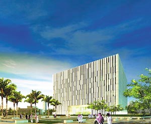 كما تم تصميم المبني بالدور المتكرر بحيث لا يزيد عرض أجزاء المبنى عن 15م يتمتع نصفها بإضاءة طبيعية من الفناء الداخلي والنصف الآخر المطل على الواجهة الخارجية بمعدلات عالية بواسطة الشبابيك العميقة التي تسمح بدخول الضوء الطبيعي دون وهج الشمس الحار.