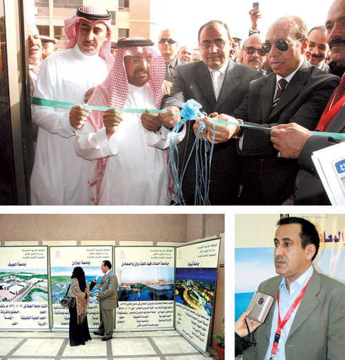 على هامش المؤتمر الدولي الثاني لجامعة المنيا افتتح الملحق الثقافي بالملحقية الثقافية بالقاهرة محمد بن عبد العزيز العقيل واللواء أحمد ضياء الدين محافظ المنيا والأستاذ الدكتور ماهر جابر محمد رئيس جامعة المنيا جناح المملكة العربية السعودية المشارك بمعرض المنيا والذي يحتوي