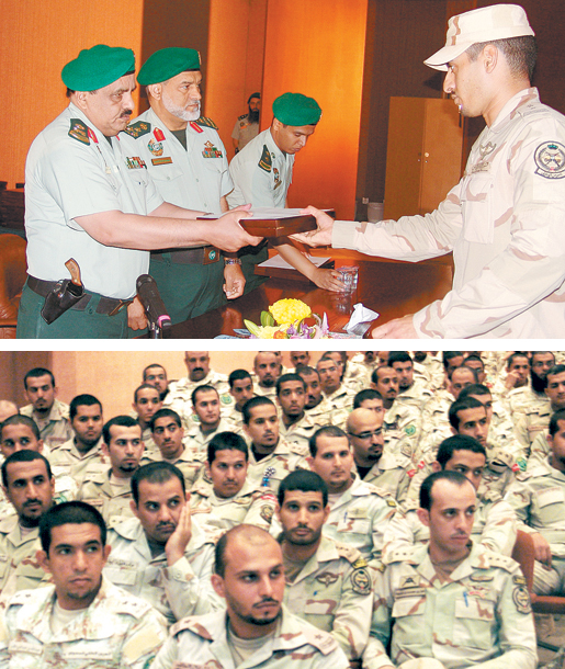 نيابة عن معالي مساعد قائد الحرس الملكي وقائد اللواء الخاص الفريق عبيد بن غثيث رعى قائد كتيبة الحماية والتعزيز اللواء عبدالله بن علي آل عايض حفل تخريج دورة أمن المنشآت المشتركة ودورة أمن وحماية الشخصيات، ودورة سائق العربة، ودورة الشرطة العسكرية التأسيسية لعام 1431هـ. وقد بدئ الحفل بتلاوة آيات من الذكر الحكيم، ثم ألقى العميد سعيد بن سلمان العمري قائد المركز كلمة شكر فيها معالي قائد الحرس الملكي ومعالي مساعده لجهودهما المتواصلة لدعم التدريب والمدربين، كما هنأ الخريجين بتخريجهم وأوصاهم بتقوى الله والإخلاص في أداء الواجب وبذل المزيد من الجهد والعطاء، ثم ألقيت كلمة الخريجين، بعدها أعلن ركن التدريب بالمركز العقيد محمد بن سعيد العمري النتائج حيث تفضل اللواء آل عائض بتسليم الجوائز والشهادات العامة للدورات.وفي نهاية الحفل قدمت الدروع التذكارية بهذه المناسبة.