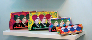 صورة لمجموعة من الحقائب النسائية طبع عليها صورة المطربة الراحلة أم كلثوم لتعرض ضمن مجموعة حقائب في بيروت من تصميم سيدة الأعمال اللبنانية سارة بيضون. |
